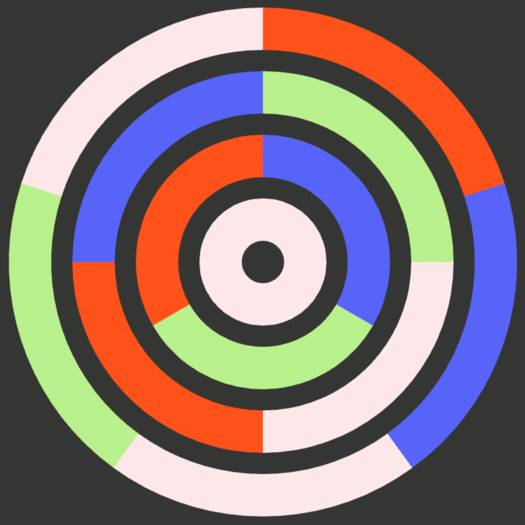 Design Brief: Choose a palette of five colors that represent YOU. Using your palette, create four square compositions. Each composition should include all five colors of your palette but applied in different quantities. The colors in your palette can be the same hue but different saturations of that hue or 5 different hues. You can create your compositions by using geometric or abstract shapes. Try using p5 to create one of your compositions. Perhaps you could find inspiration in the generative artwork of Vera Molnar.