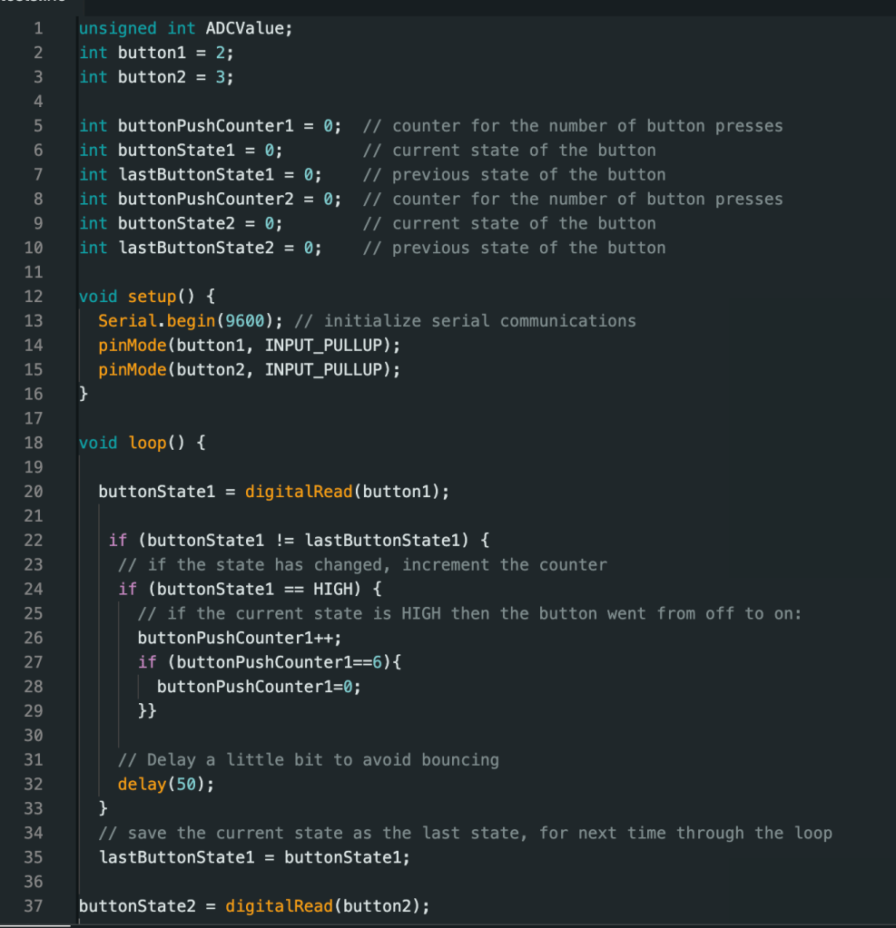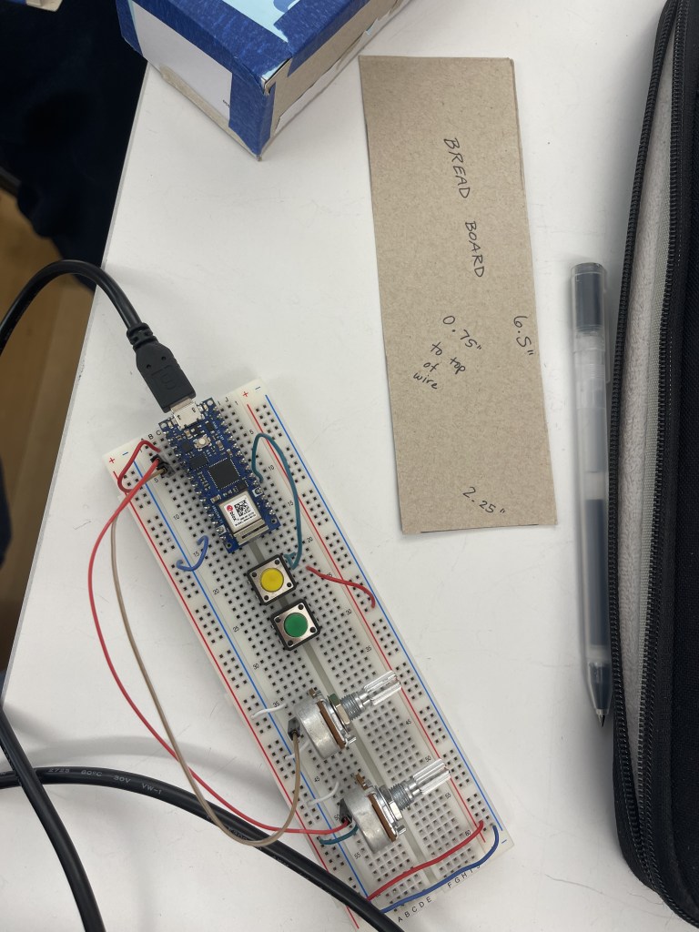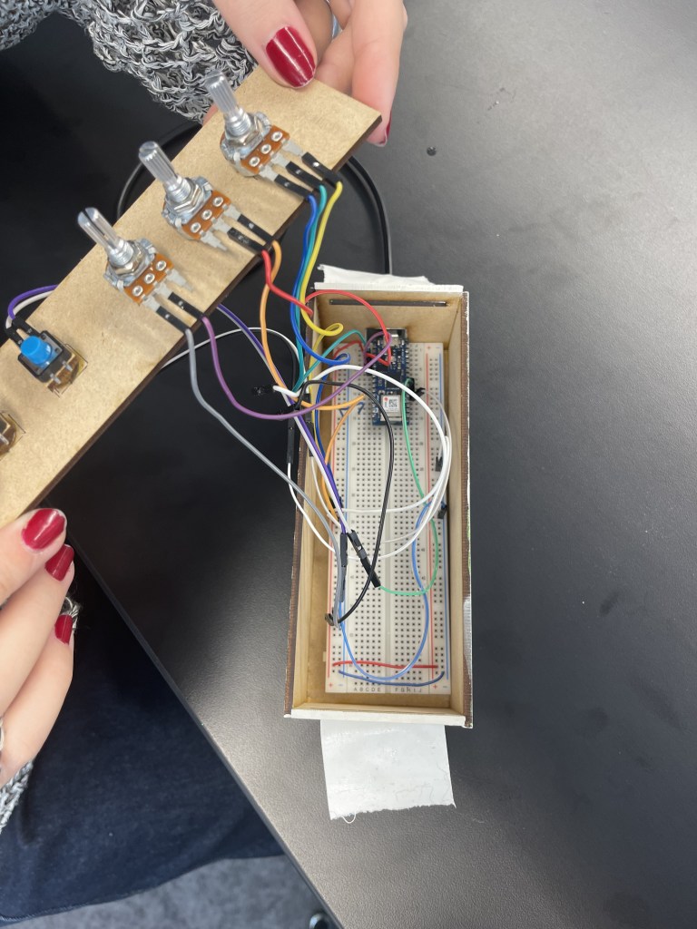 Because we both also had a pretty heavy workload with other midterms we had going on, we decided to scale back the idea slightly, since we also had to learn how to do the code for connecting Arduino to p5.js. In the end, we included a selection of buttons and potentiometers to create a small VJ set up.