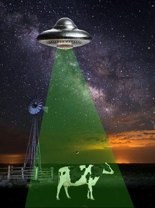 I would love to make the cow spin around its own center axis as it gets closer to the UFO. - Make the UFO interactive or animated somehow
