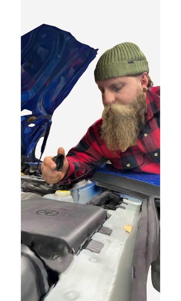 I decided to take a scan of my partner while he was working on a car for his job as an automotive technician. He has been working on cars since he was a teenager and after years of working on Volkswagens, he made the jump to Porsche. Seeing how hard he has worked to get where he is now has been really inspiring and I am really proud of him.