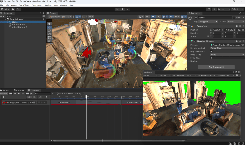 Alyssa then took some time to experiment in Unity with the Depthkit plugins and made a sample scene that looks amazing. It was really exciting to see everything come together and the potential of the project and see how things could be combined to make a scene. It was also really cool that Alyssa’s IKEA idea seemed to work really well and were already scaled to the correct size.