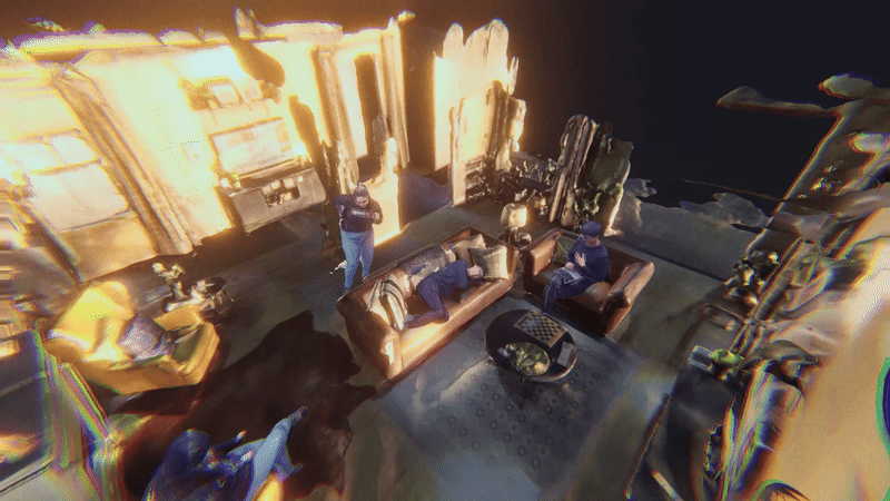 I was really glad we had this opportunity to map everything out and test. For example, we found out that the chairs in the volumetric capture studio end up being just shiny enough to disappear. We also tested out different brooms for the cleaning and singing situation and found that if we used gaffer tape to get rid of some of the shine on the handle it would help with the capture quality.